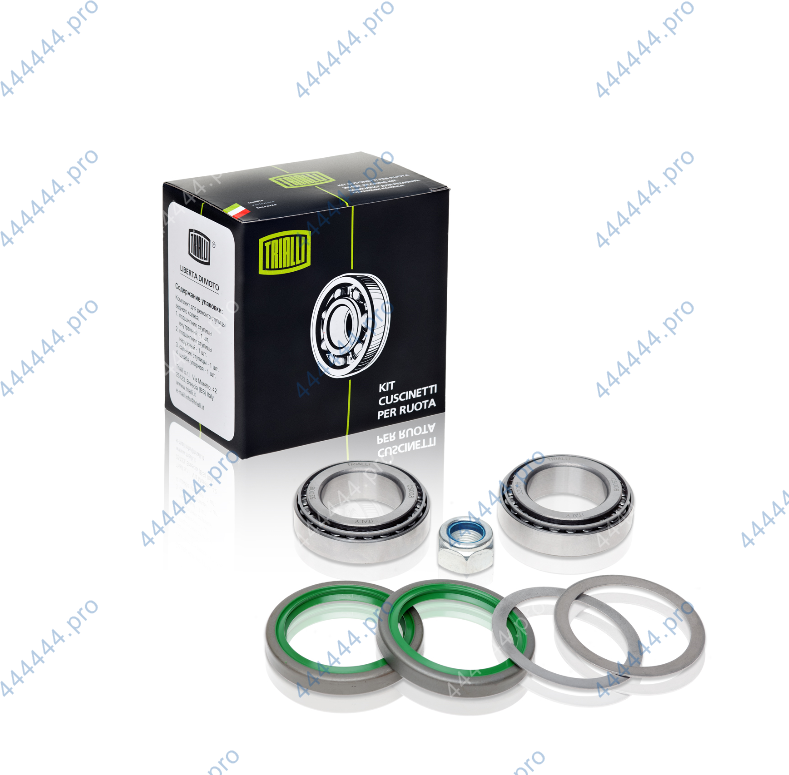 В ремонтные комплекты ступицы колеса от Trialli входят усовершенствованные по нашим технологиям подшипники с гибридной смазкой, сальники, кольца для сальников, и две идеальноподходящие по размеру гайки. Также в упаковку добавлена инструкция по установке и эксплуатации комплекта.